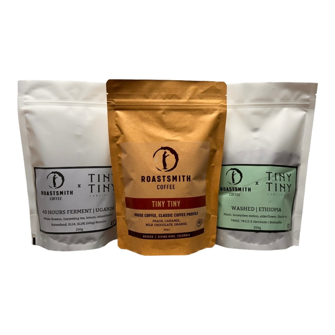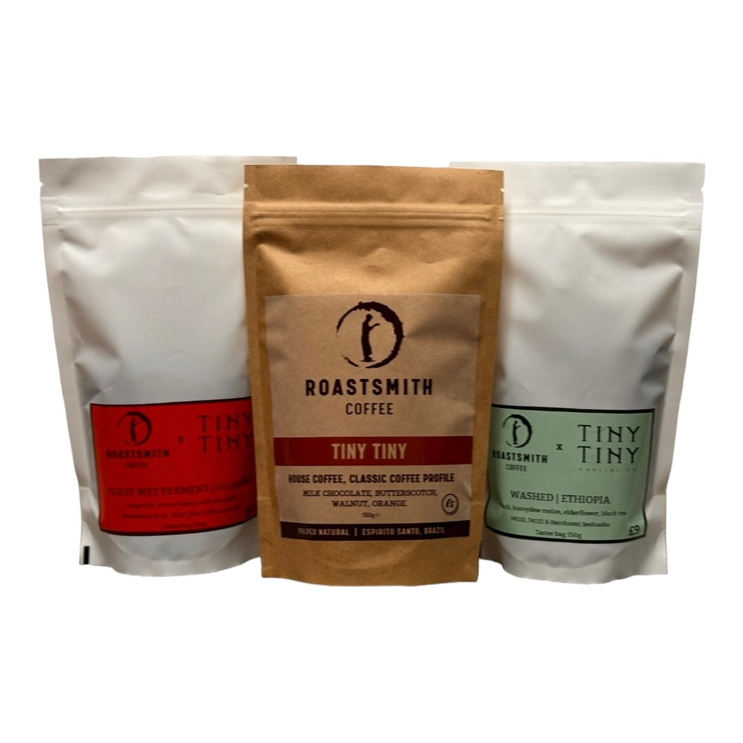 Each box includes three 150g or 250g bags of coffee. One of our seasonal House Coffee and two of our special guest coffees that we have available at that time.